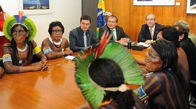 Na tarde desta quarta-feira, o presidente da Câmara recebeu um grupo de lideranças indígenas acompanhado de alguns deputados que se apresentaram contrários à reinstalação da PEC 215. Na oportunidade, Cunha afirmou que vai instalar a comissão e que o grupo de parlamentares a favor dos índios deve se mobilizar para conquistar a maioria. Ele explicou que o Regimento Interno da Câmara não permite que o presidente impeça o desarquivamento do texto, mas garantiu que vai oferecer todas as condições de diálogo para que as lideranças indígenas sejam ouvidas na Câmara. Vale lembrar que esta foi uma das bandeiras da FPA assumidas por Cunha durante sua campanha à presidência da Casa.