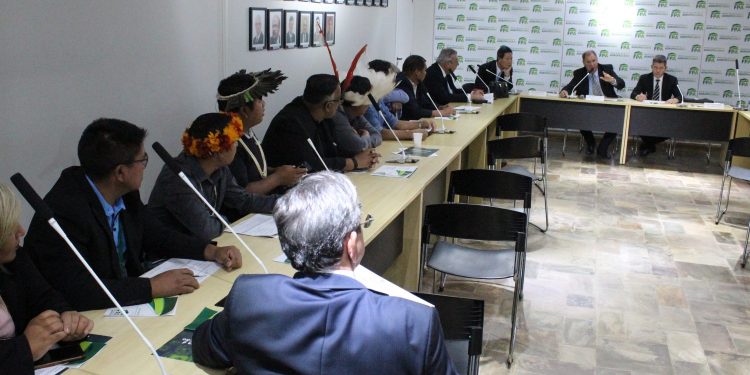 Representantes de comunidades indígenas estiveram na reunião da FPA para pedir apoio na aprovação da PEC 187/2016, que acrescenta um parágrafo ao artigo 231 da Constituição, a fim de permitir que as comunidades indígenas, não só pratiquem atividades agropecuárias e florestais em suas terras, bem como comercializem aquilo que foi produzido. A proposta está em análise na Comissão de Constituição e Justiça e Cidadania da Câmara dos Deputados.