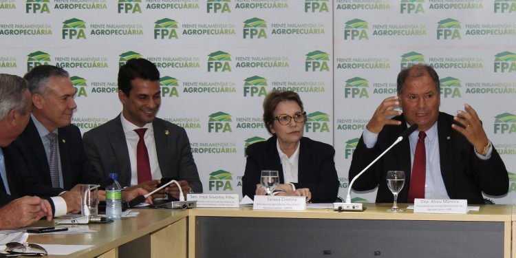 A Frente Parlamentar da Agropecuária (FPA), recebeu, nesta terça-feira (11), a ministra da Agricultura Tereza Cristina para debater a Medida Provisória 910/2019, sobre a Regularização Fundiária. A reunião também contou com a presença do relator da proposta, senador Irajá (PSD-TO) e do presidente da Comissão Especial da MP na Câmara, deputado Lúcio Mosquini (MDB-RO). A medida trata sobre a desburocratização da regularização de ocupações incidentes em terras situadas da União.