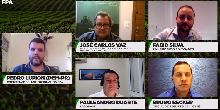 A Lei do Agro (13.986/2020) segue em pauta nas lives da Frente Parlamentar da Agropecuária (FPA). O tema debatido nesta quinta-feira (9) foi o Patrimônio Rural em Afetação, que contou com a mediação do deputado Pedro Lupion (DEM-PR) e participação do oficial de registro de imóveis, Bruno Becker; do advogado e ex-secretário de Política Agrícola do MAPA, José Carlos Vaz; do representante da Pinheiro Neto Advogados, Dr. Fábio Silva; e do representante da Rabobank, Pauleandro Duarte.