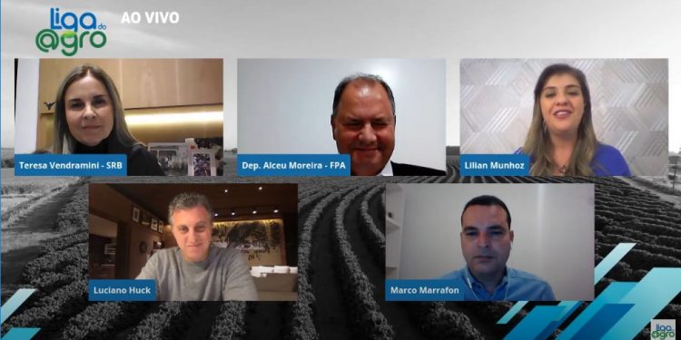 A Liga do Agro realizou nesta quinta-feira (6) debate sobre a força do agro brasileiro e a importância da comunicação do campo para a cidade. A live foi apresentada pela jornalista Lilian Munhoz e mediada pelo advogado Marco Marrafon e teve como debatedores o presidente da Frente Parlamentar da Agropecuária (FPA), deputado federal Alceu Moreira (MDB-RS), o comunicador Luciano Huck e a presidente da Sociedade Rural Brasileira, Teka Vendramini.